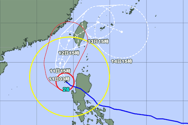 台湾を通過した後はかなり勢力が落ちるようですが、台風の状態で八重山諸島に接近するとの予報です。